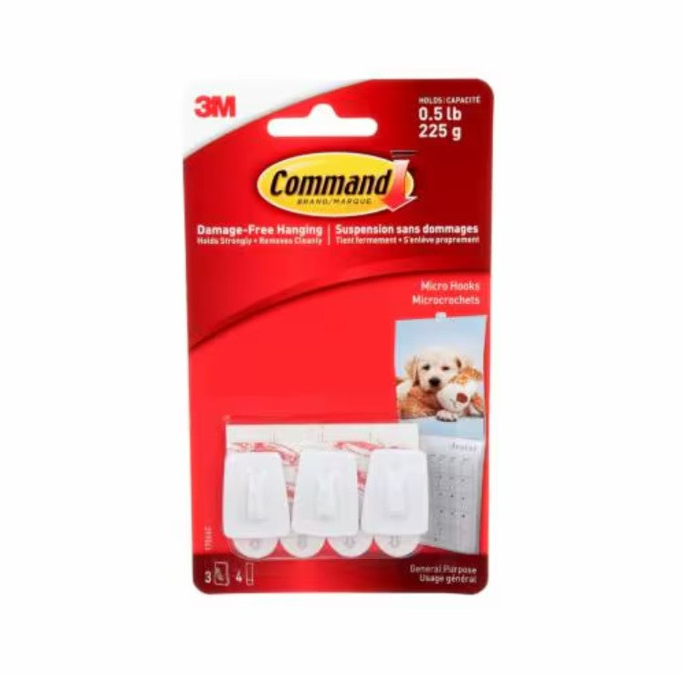 COMMAND UTILITY HOOKS MICRO 3PC 4 STRIPS