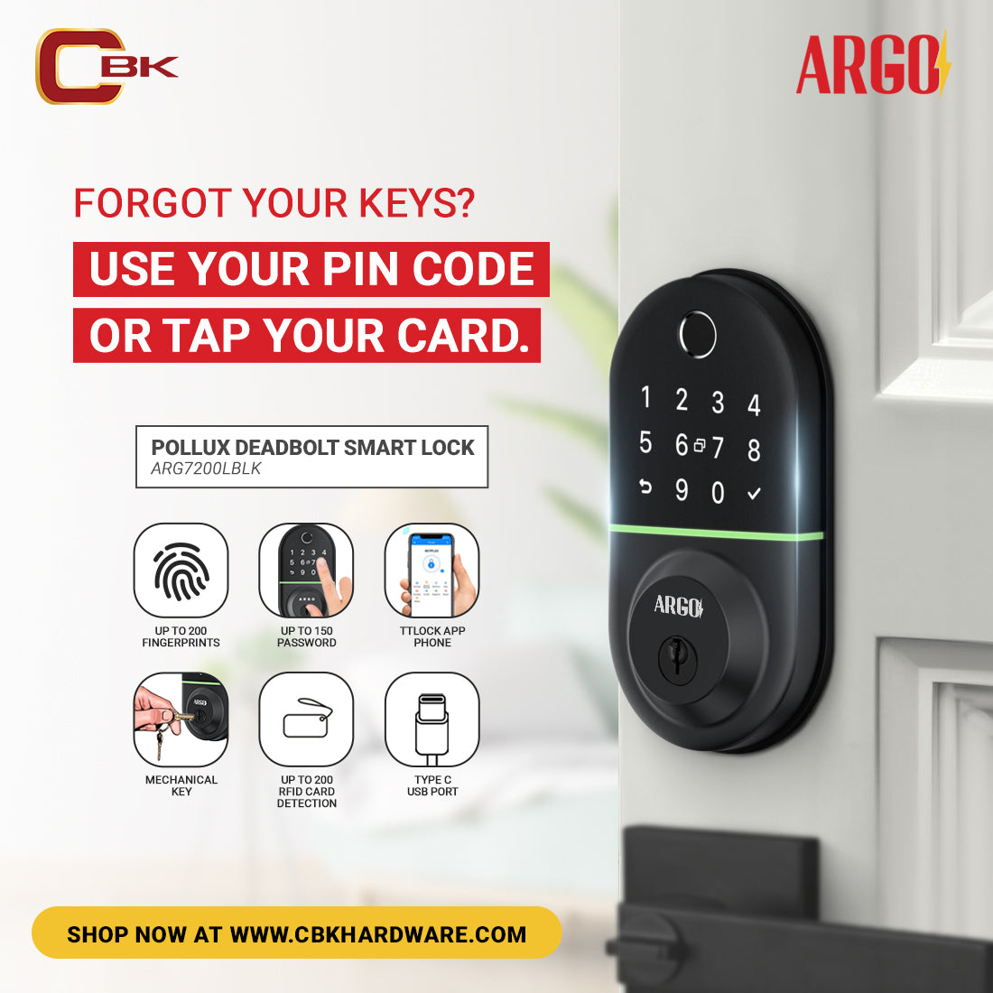●Fingerprint, Pin Code,Card,Mechanical Key,TTLock App, Type C port